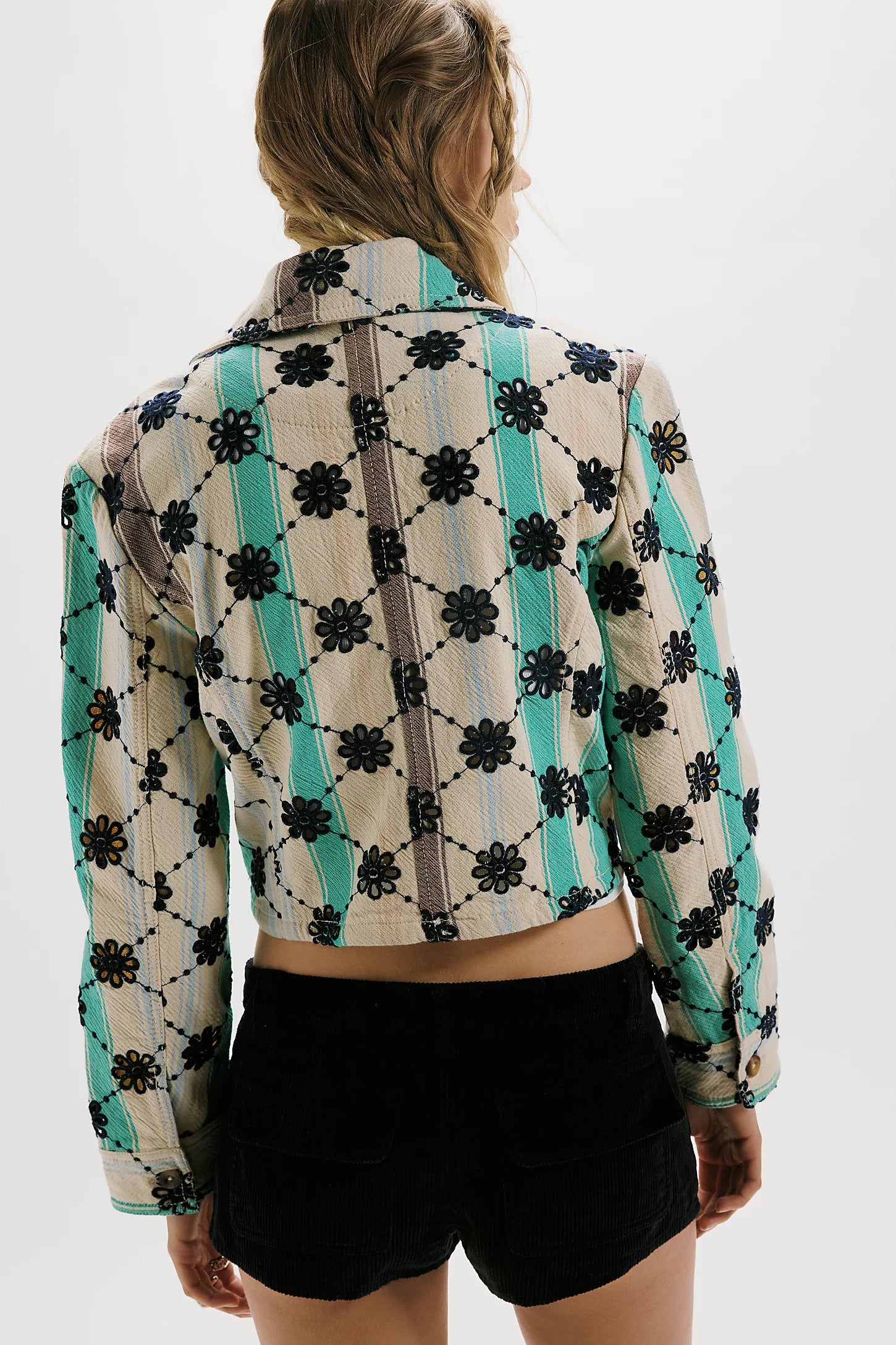Whether you're pairing it with jeans for casual elegance, styling it over a dress for added structure, or layering it with trousers for polished style, the Cassie Mod Jacket delivers that perfect combination of vintage-inspired charm and modern versatility. The cropped, boxy silhouette and embroidered details create a look that's both playful and sophisticated.