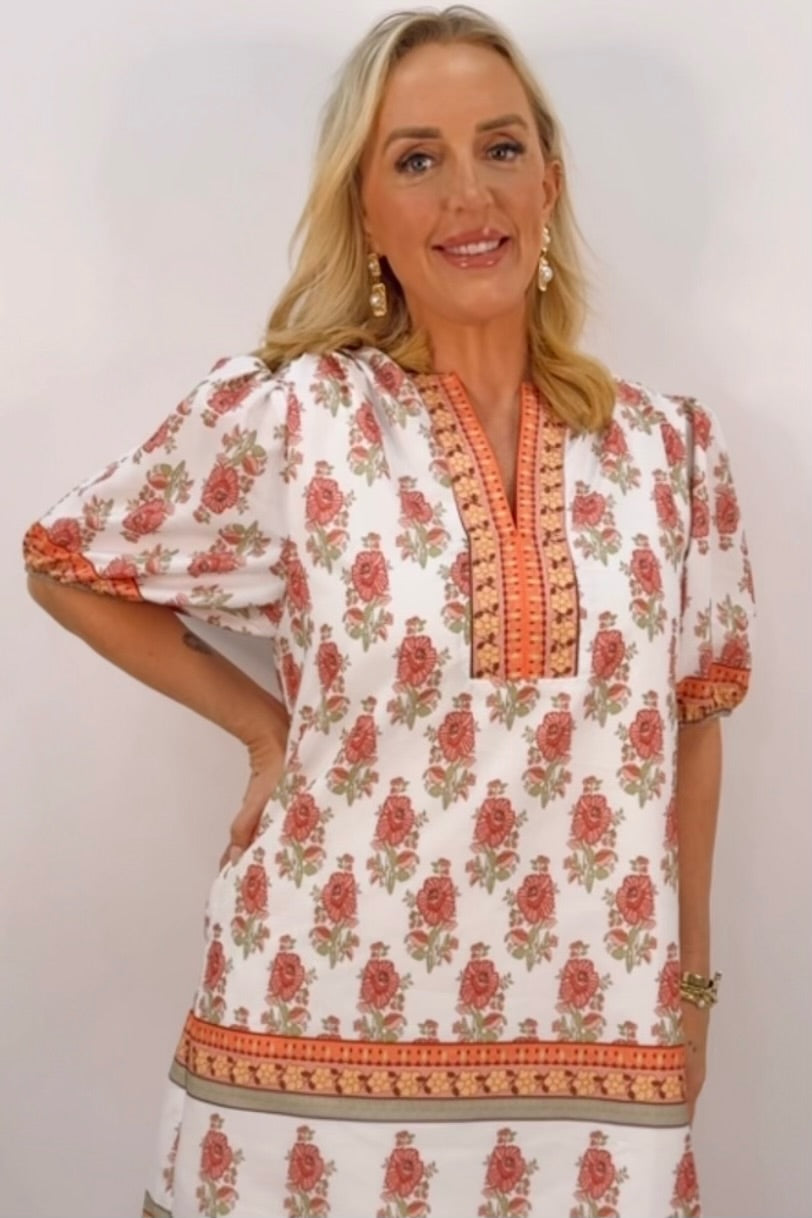 FLORAL BLOCK PRINT POPLIN MINI DRESS