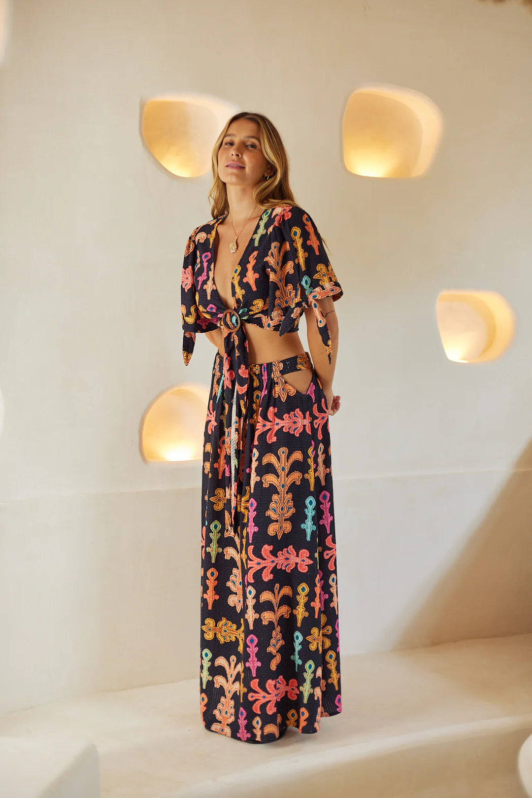 Resort-Chic Look: Pair the WANDERLUST TOP with high-waist linen trousers, strappy sandals, and layered gold jewelry for an elevated vacation outfit.