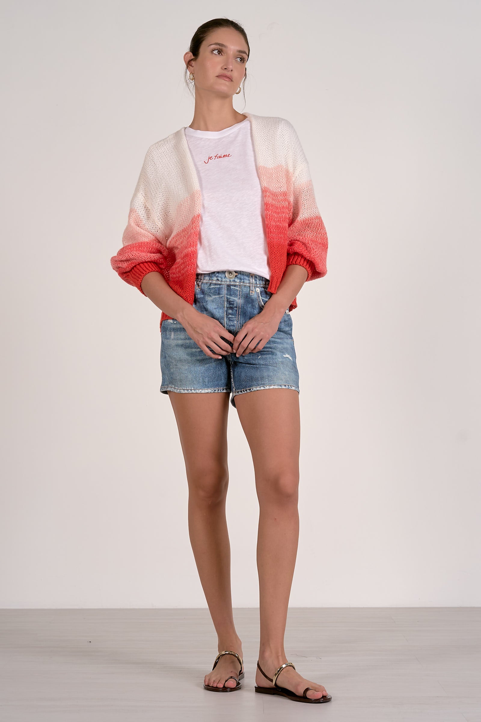 Bring some color magic to your wardrobe. This lightweight ombré cardigan blends creamy white into warm coral tones for the perfect sunset-inspired vibe. Easy to throw on over tees, tanks, or dresses, it adds a pop of fun to any look — beach day, brunch date, or just running errands in style.