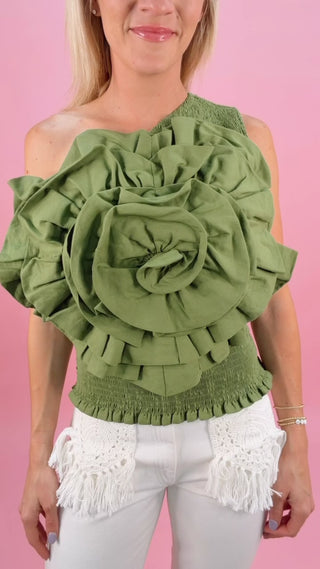 Whether you're pairing it with jeans for casual elegance, styling it with trousers for polished sophistication, or wearing it with a skirt for special occasions, the Green One Shoulder Blouse delivers that perfect combination of sustainable style and joyful expression. The rich green hue and fluid drape create a look that's both eye-catching and effortlessly charming.