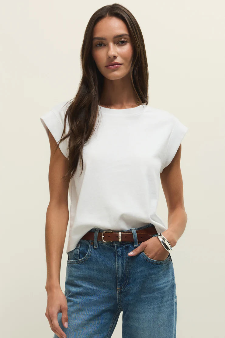 Details: 100% Cotton | Cotton Jersey | Regular Fit | Crew Neck | Short Sleeve | Statement Sleeve Detail | Heavy Soft Wash | Color: White