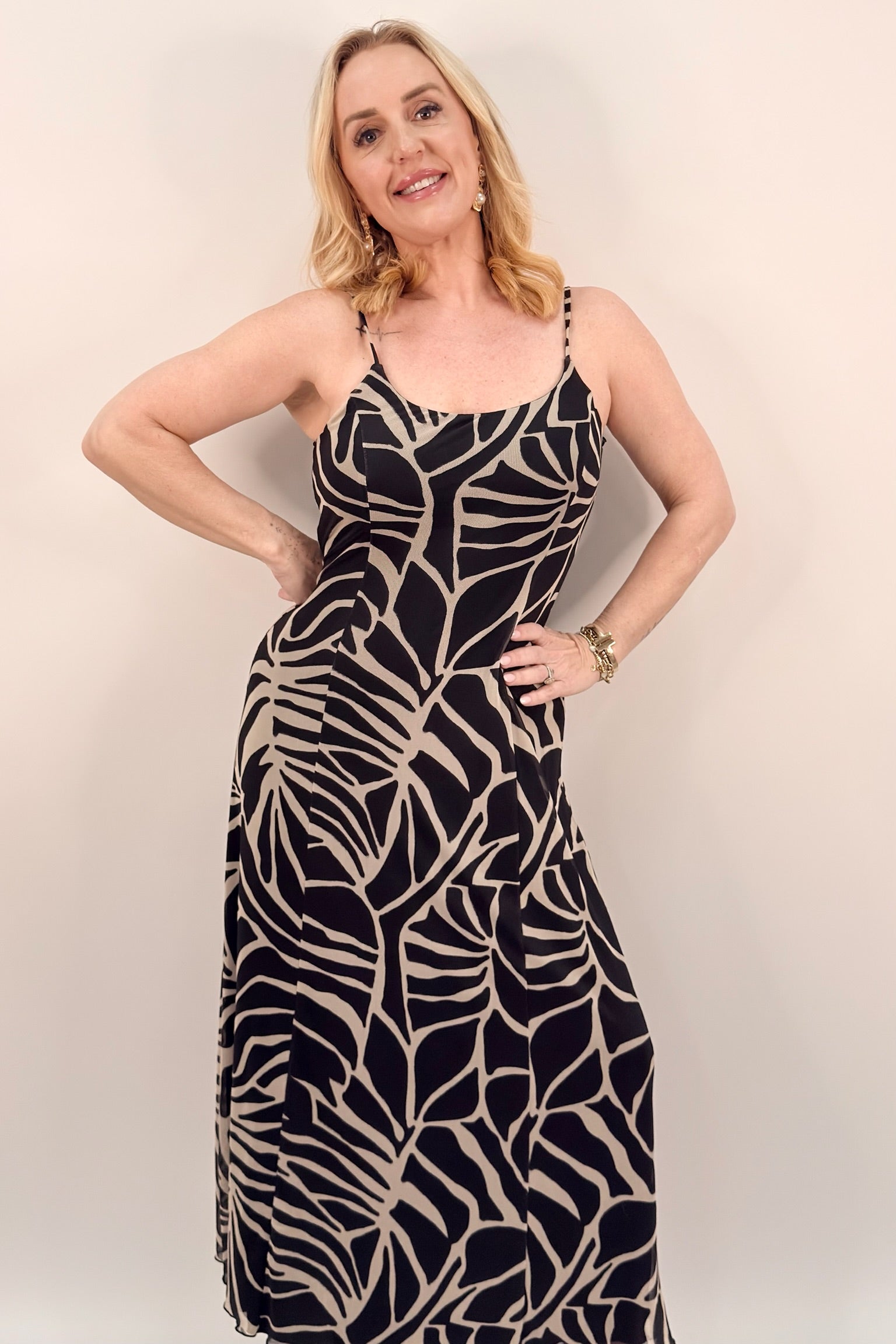 Discover versatile elegance with the Charisma Tova Palm Midi Dress. This maxi dress features a flattering shape with princess seams, a scoop back, and adjustable straps, making it the perfect plus one for any day or night occasion.