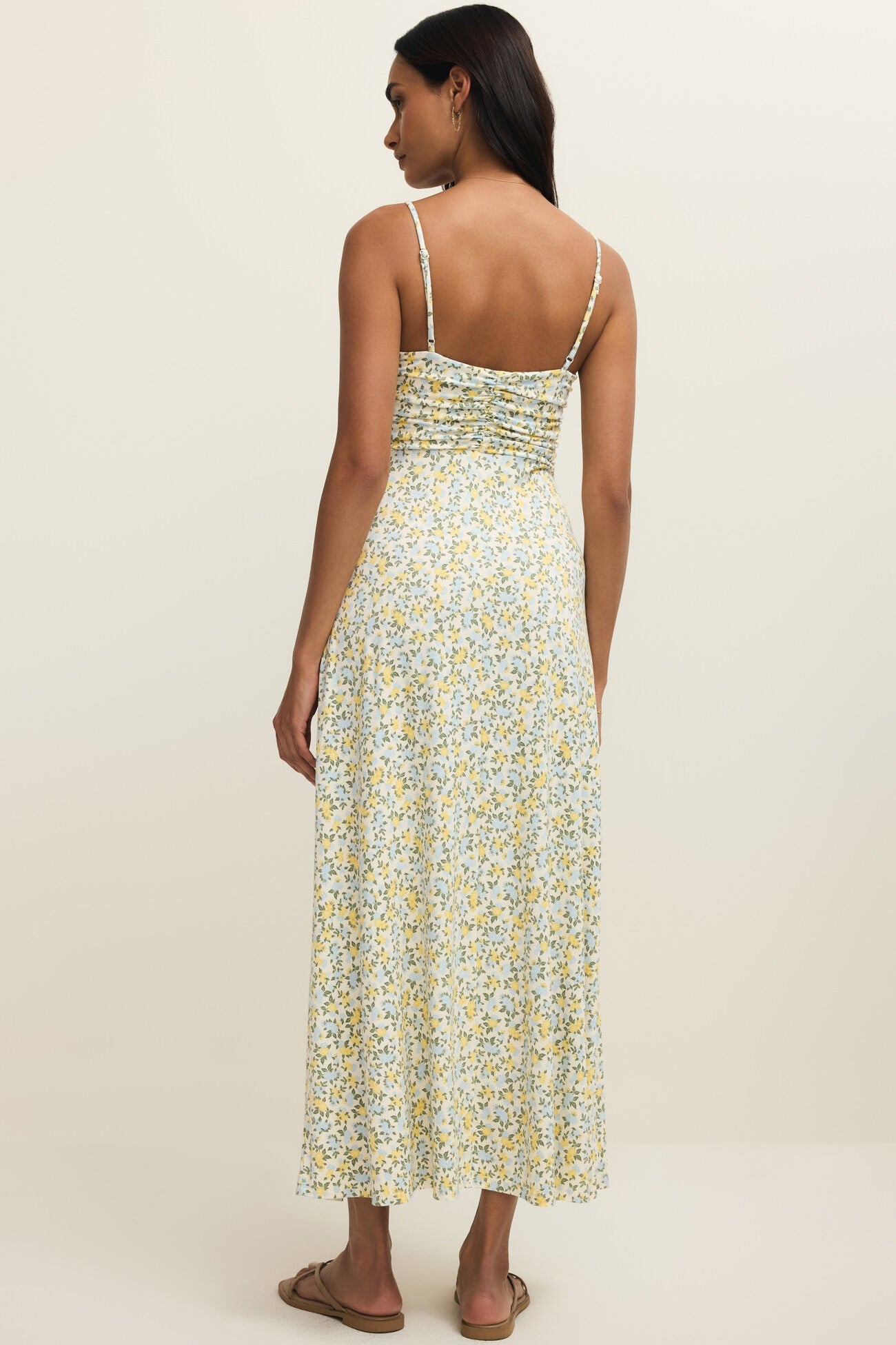 Details: 90% Rayon, 10% Spandex | V-Neck | Adjustable Spaghetti Straps | Midi Length | Partially Lined | Length from shoulder: 54"
