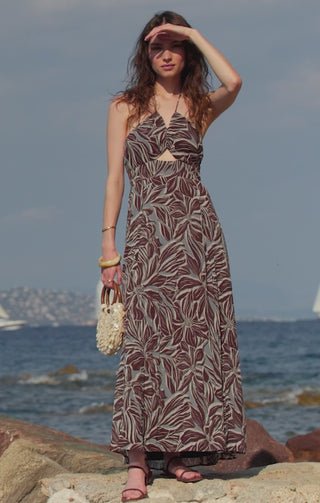 Make a statement in the Lanie Zinn Floral Maxi Dress. Crafted from luxurious crinkle georgette with a heavy soft wash, this halter-style maxi dress drapes beautifully and moves with you for effortless elegance.