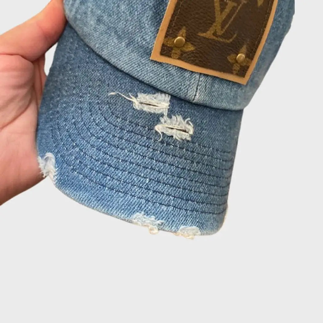 LV UPCYCLED DISTRESSED DENIM BASEBALL CAP