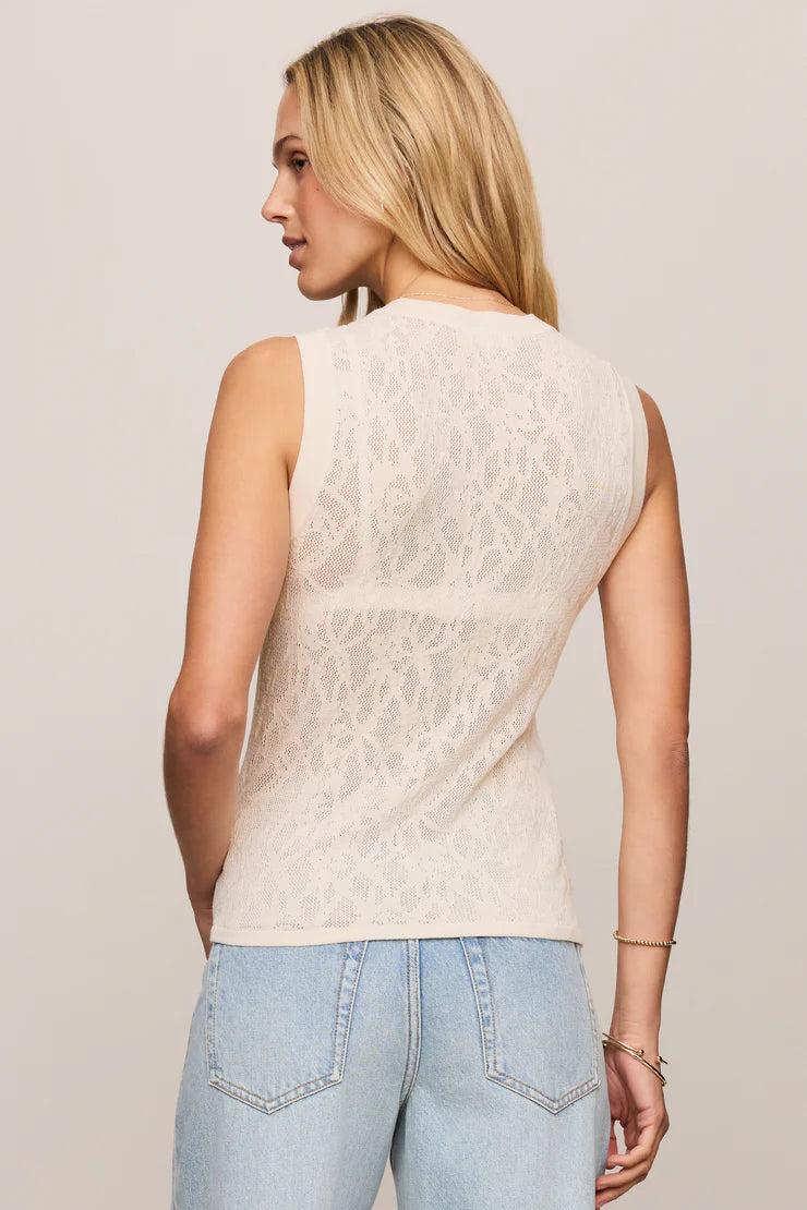 Details: 74% Viscose, 26% Nylon | Crew Neck | Sleeveless | Regular Fit | Mesh Detail | Color: Cloud