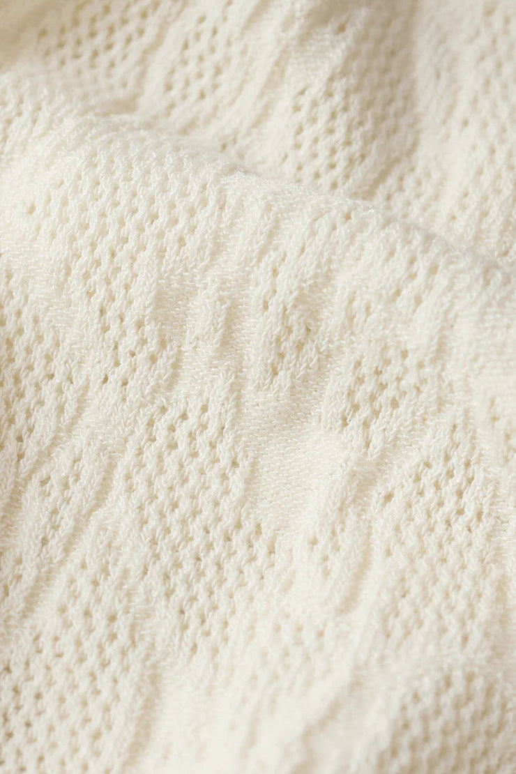 Whether you're pairing it with tailored trousers for the office, styling it with jeans for casual elegance, or layering it under a blazer for polished sophistication, this top delivers that perfect blend of comfort and versatility. The mesh detail adds a touch of refinement while the lightweight yarn blend keeps you comfortable throughout your day.