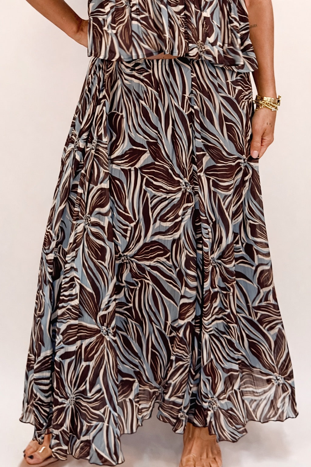 Whether you're pairing it with the matching Casey Zinn Floral Tank for a complete set or styling it with a simple top for versatile elegance, this skirt delivers that perfect blend of comfort and sophisticated style. The crinkle georgette fabric and floral print create a beautiful, flowing silhouette.