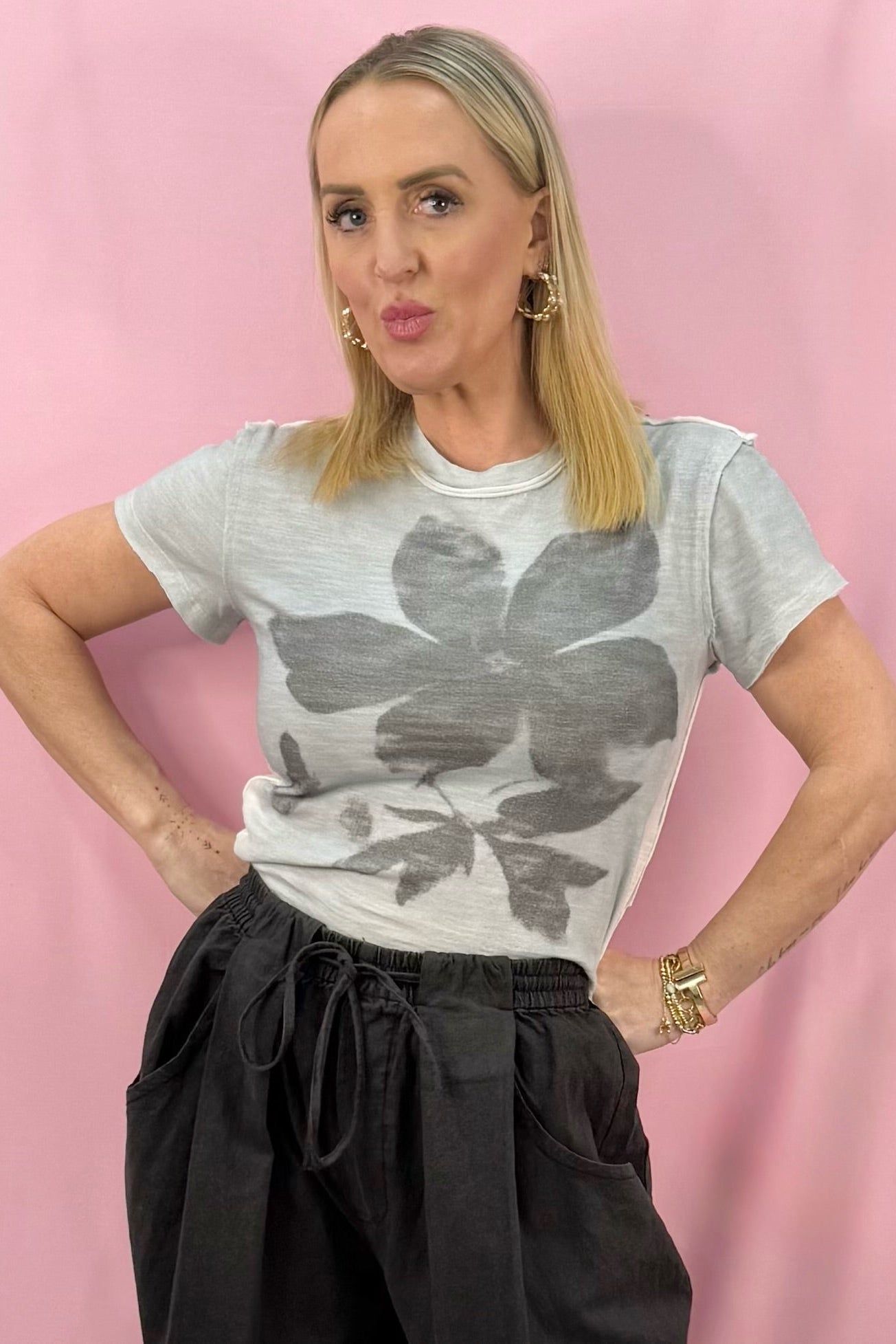 Whether you're pairing it with your favorite denim for a casual look or tucking it into a skirt for elevated style, this tee delivers that perfect blend of comfort and artistic flair. The oversized floral print adds instant personality to any outfit.