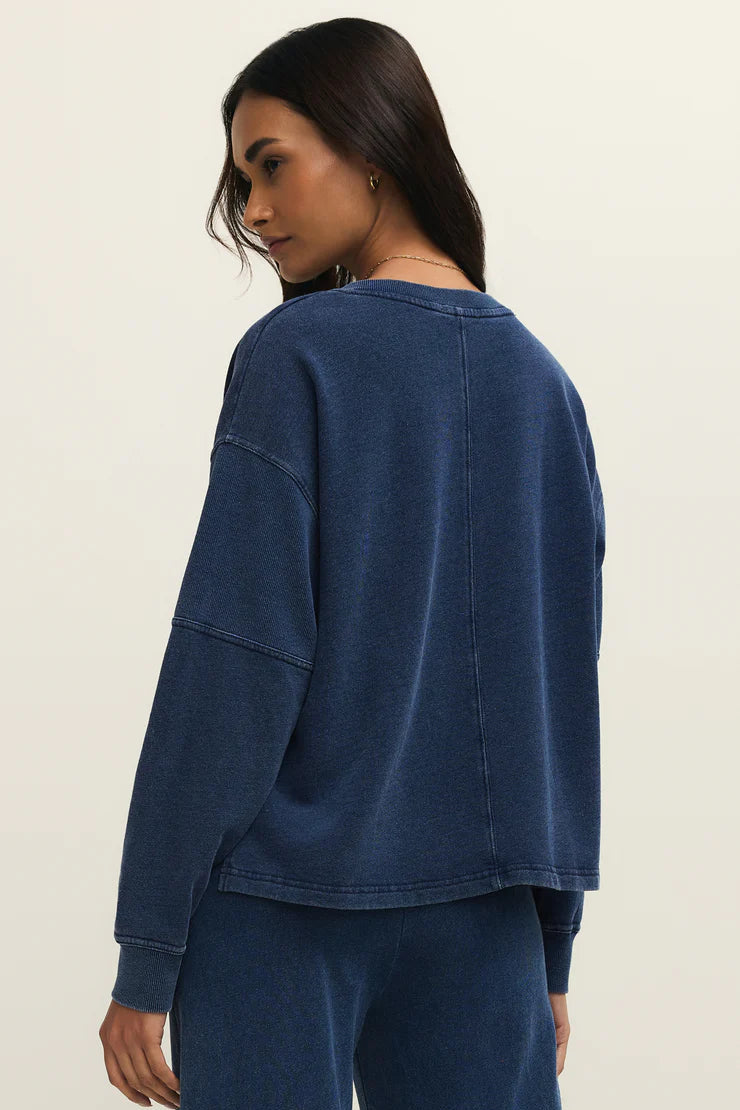 DELPHINE KNIT DENIM SWEATSHIRT